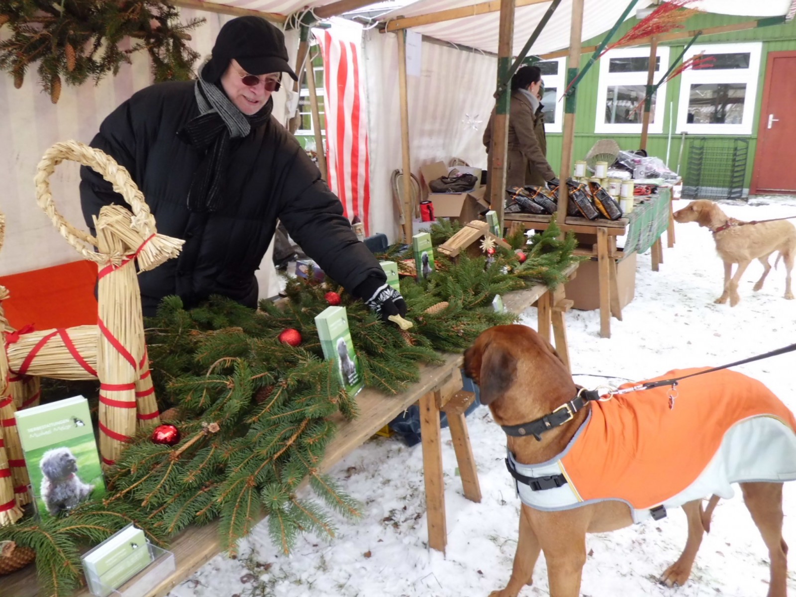 Ich bin ganz begeistert und gebe den Befehl „Search“. Da zuckelt mein Bärchen los. Irgendwie habe ich nicht so den Eindruck, dass er an der Suchspur interessiert ist. Wohl aber an den Markierungen anderer Rüden. Langsam aber stetig nähert er sich Margit und rast die letzten Meter auf „freudestrahlend“ auf sie zu, um sich von ihr ausgiebig mit Leckerlis belohnen zu lassen. Dayo darf noch eine zweite Spur suchen, die er schneller (weil keine Markierungen anderer Rüden zu finden sind?) und konzentrierter löst. Dann geht es zurück ins Auto und Athani ist dran.