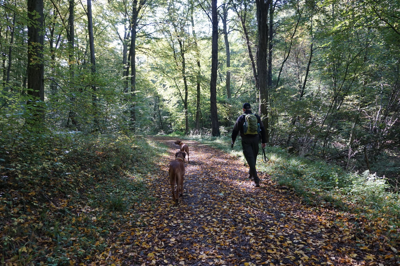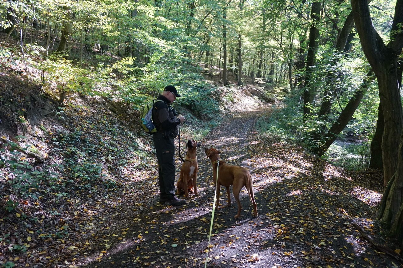 Die herbstlichen Temperaturen bei Sonnenschein sind genau richtig zum Wandern. Zwischendurch serviere ich Dayo und Suri einen Napf Wasser und mache Fotos von wunderschönen Natur um uns herum.