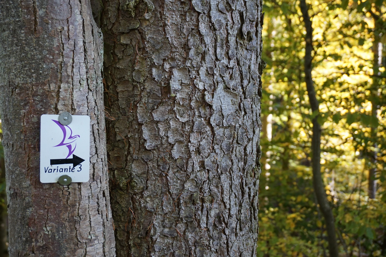 Inzwischen ist es uns auch egal, an welcher Sorte Markierung – violetter Milanweg Variante 3, violetter Milanweg ohne Zusatz oder welcher der Milanwege auch immer – wir entlang laufen. Hauptsache irgendein Milanweg ist ausgezeichnet.