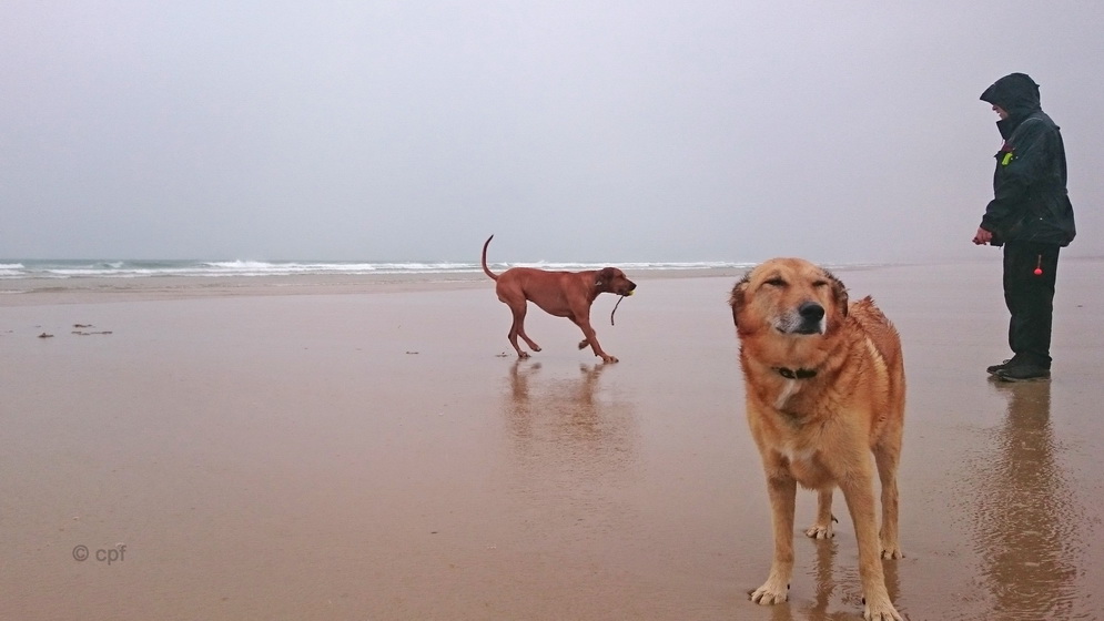 Wir haben nur an einer anderen Stelle geparkt. Und dann sind wir einfach nur am Strand entlang gelaufen, der hier sehr, sehr lang ist. Da wir hier nicht so viele Menschen antreffen, können die Hunde frei laufen und am Strand toben.