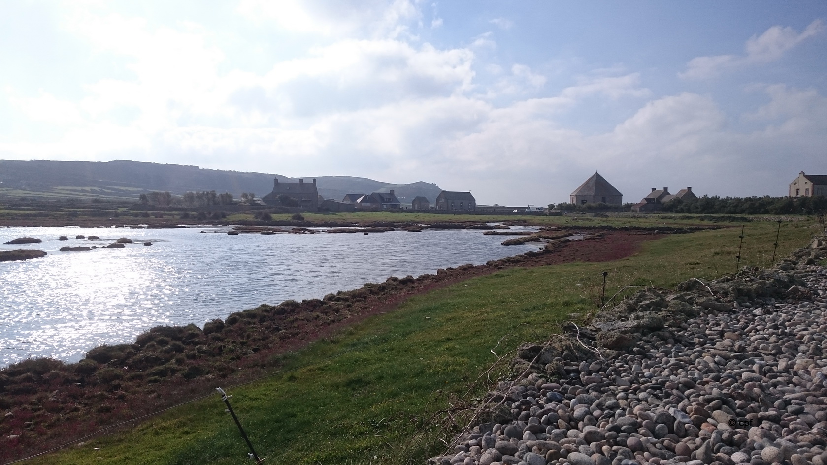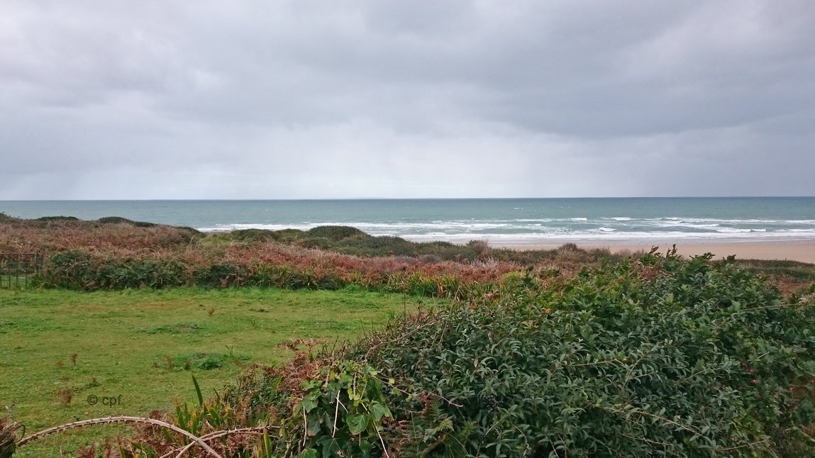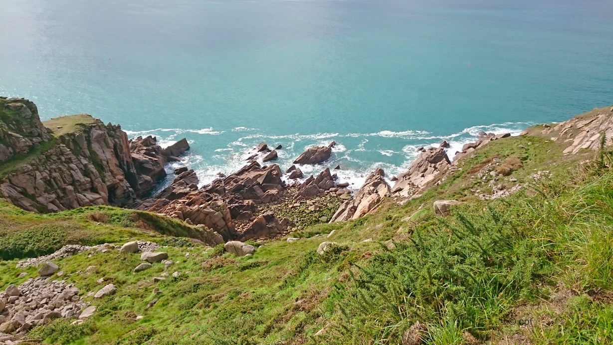 Am Donnerstag endlich meint es der Wettergott gut mit uns. Es soll trocken bleiben! Wir waren zu einer „Spazierwanderung“ nach Les Pieux an der Route Neuve. Das sind rund 15 Minuten im Auto. Von hier aus geht es noch ein Stück an der Straße entlang, bis wir zu einem Weg, der die Steilküste entlang führt, kommen.