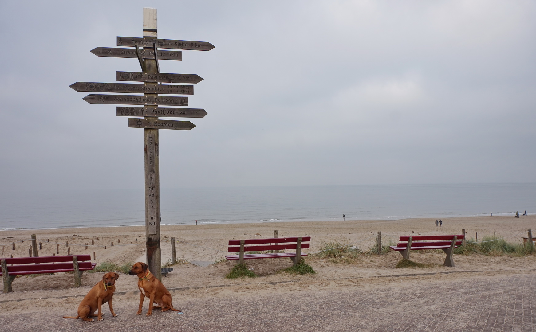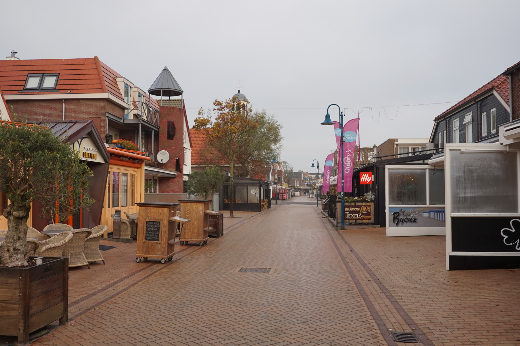 An diesem 1. November ist De Koog morgens fast menschenleer. Die zahlreichen Restaurants und Geschäfte auf der Dorpstraat lassen jedoch erahnen, wie es hier an einem Sommertag hergehen mag. Menschen, Menschen, Menschen! Aber jetzt ist ja November, und ich spaziere mit Dayo und Suri auf unserer Morgenrunde in Richtung Strand.