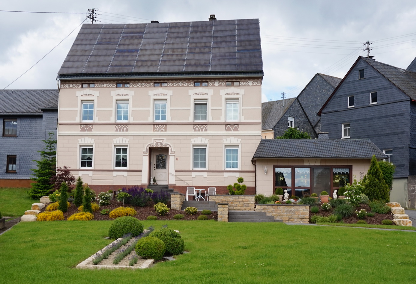 Das Anwesen, das neben einem Hauptgebäude mit zwei Ferienwohnungen über fünf Ferien-Holzhäuser verfügt, heißt nicht zu Unrecht Ranch, denn der Vorbesitzer führte hier einen Pferdestall.