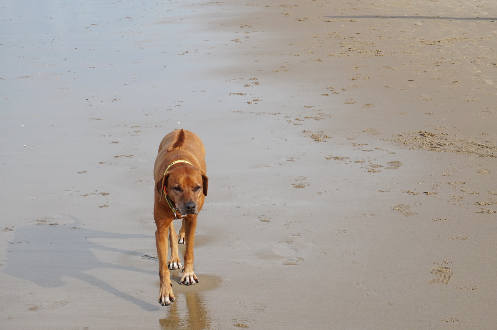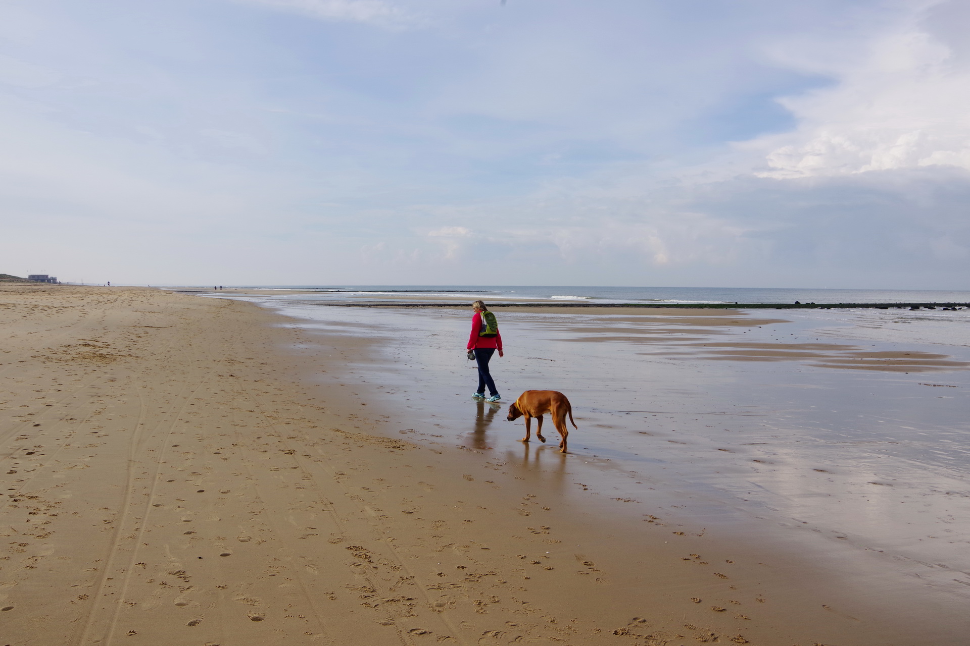 Der Sandstrand ist wunderbar breit und schier unendlich. Suri scheint noch nicht so richtig glauben können, dass sie hier ganz unbeschwert ohne Leine laufen kann. Sicherheitshalber bleibt die Bärin mal lieber in der Nähe von „Mutti“. Da kann ihr nichts passieren.