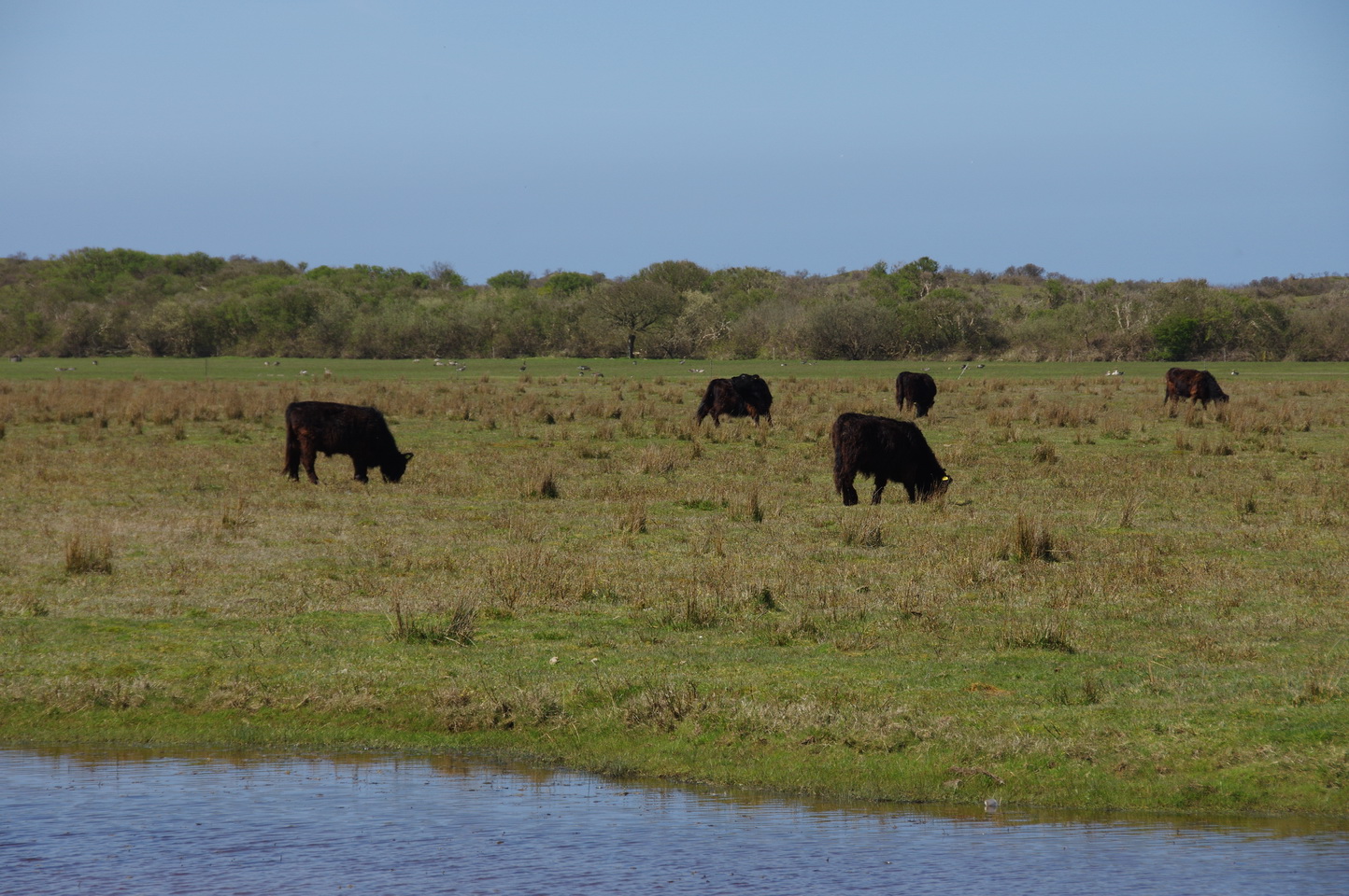 Es wird an den Ein- und Ausgängen übrigens überall darauf hingewiesen, dass die Rinder unter Umständen gefährlich werden können und man sich möglichst fern von ihnen halten sollte. Dass die Hunde an der Leine zu führen sind – was übrigens für das gesamte Naturschutzgebiet (auch für De Slufter) gilt – versteht sich von selbst.