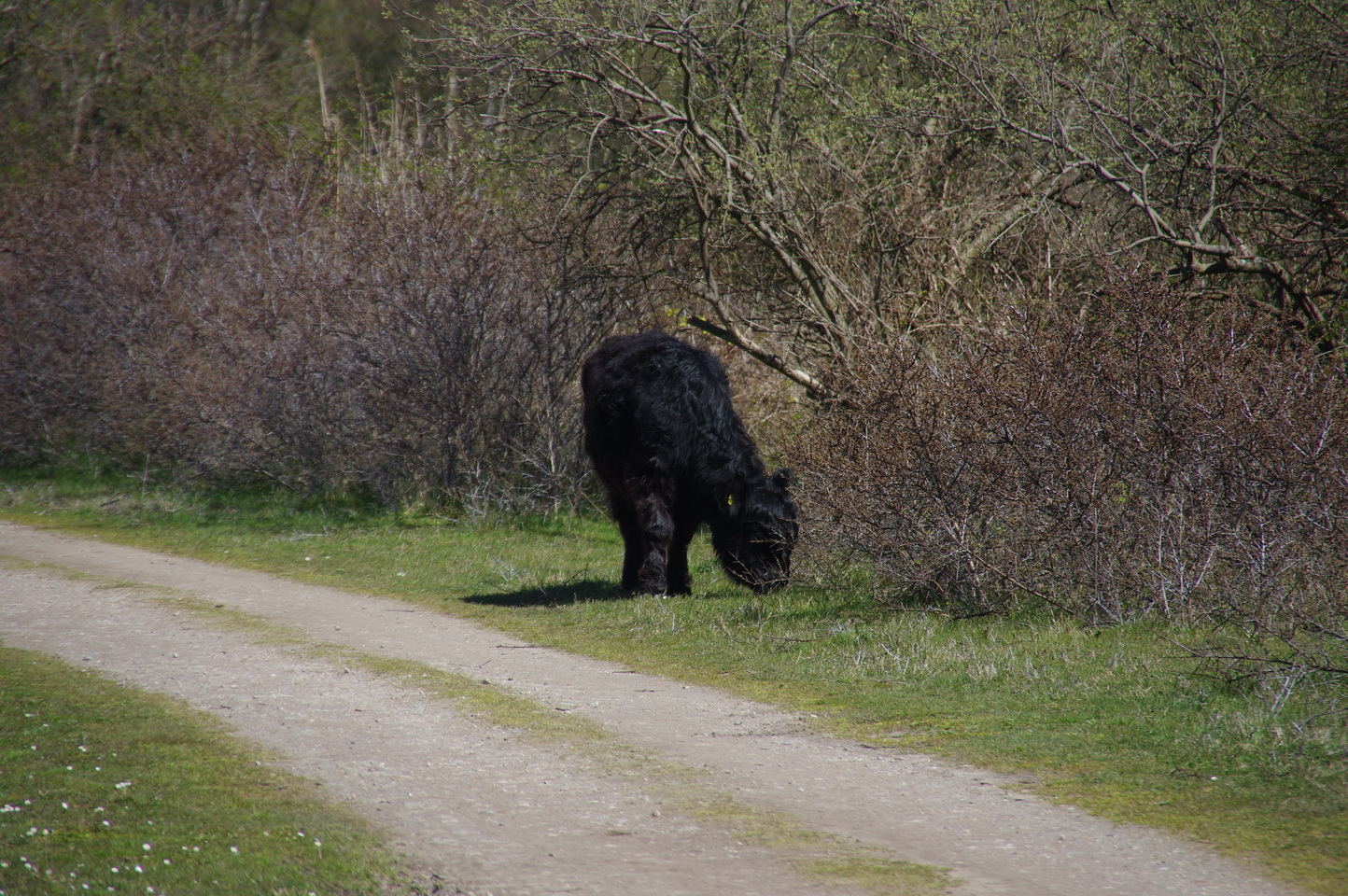 … denen man durchaus schon einmal Auge in Auge gegenüber stehen kann. Aufgrund dieser freilaufenden Rinder ist das Gelände größtenteils eingezäunt. Schon am ersten Zaun sehen wir, dass ein paar Rinder direkt am Wanderweg stehen. Wegen Dayo und Suri haben wir uns dann entschieden, einen kleinen Umweg zu laufen. Wir sind über die Dünen rüber und ein Stück am Fahrradweg entlang gelaufen, der sich außerhalb des Naturschutzgebiets befindet. Bei der nächsten Möglichkeit (vielleicht einen Kilometer weiter) sind wir wieder in De Muy abgebogen.