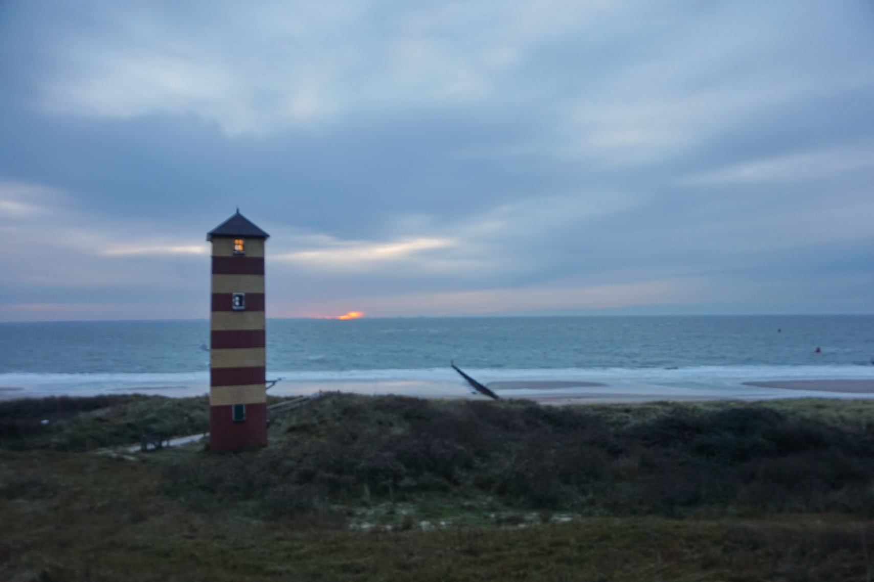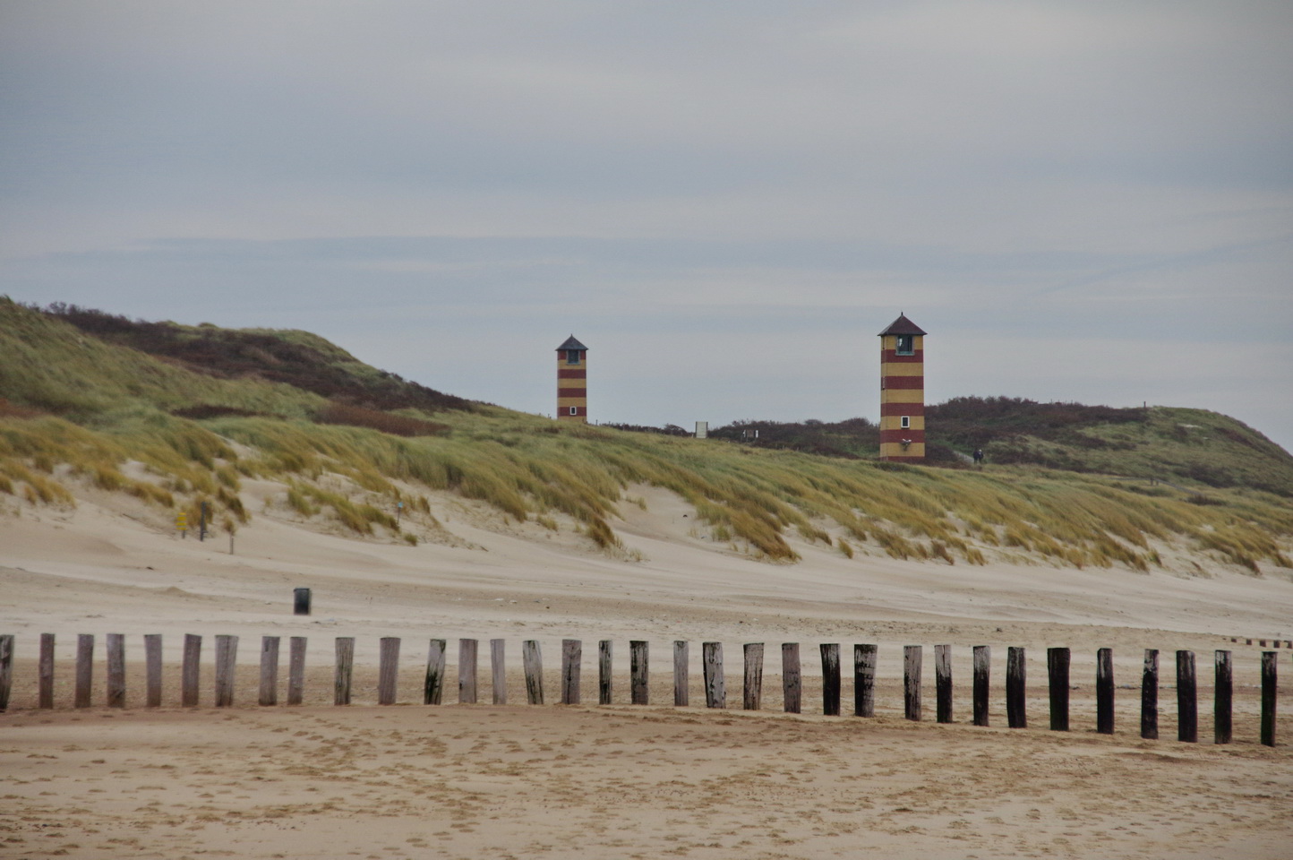 Da es zunehmend dämmriger und dunkler wird, müssen wir uns leider vom Strand verabschieden. Noch ein kleiner Spaziergang durch die Dünen und an den Leuchttürmen vorbei …