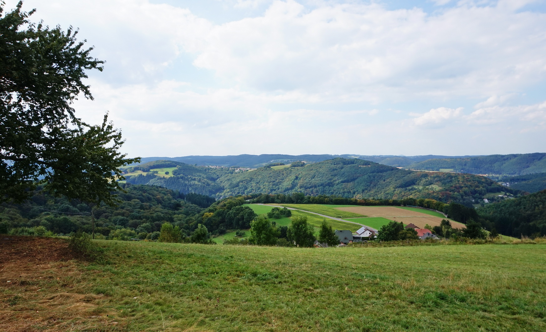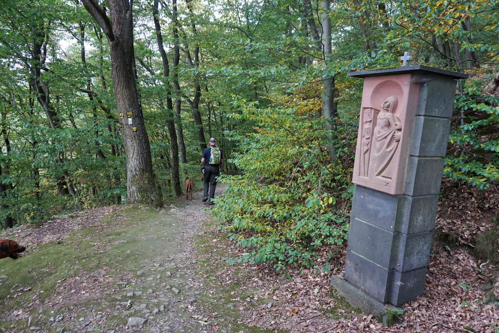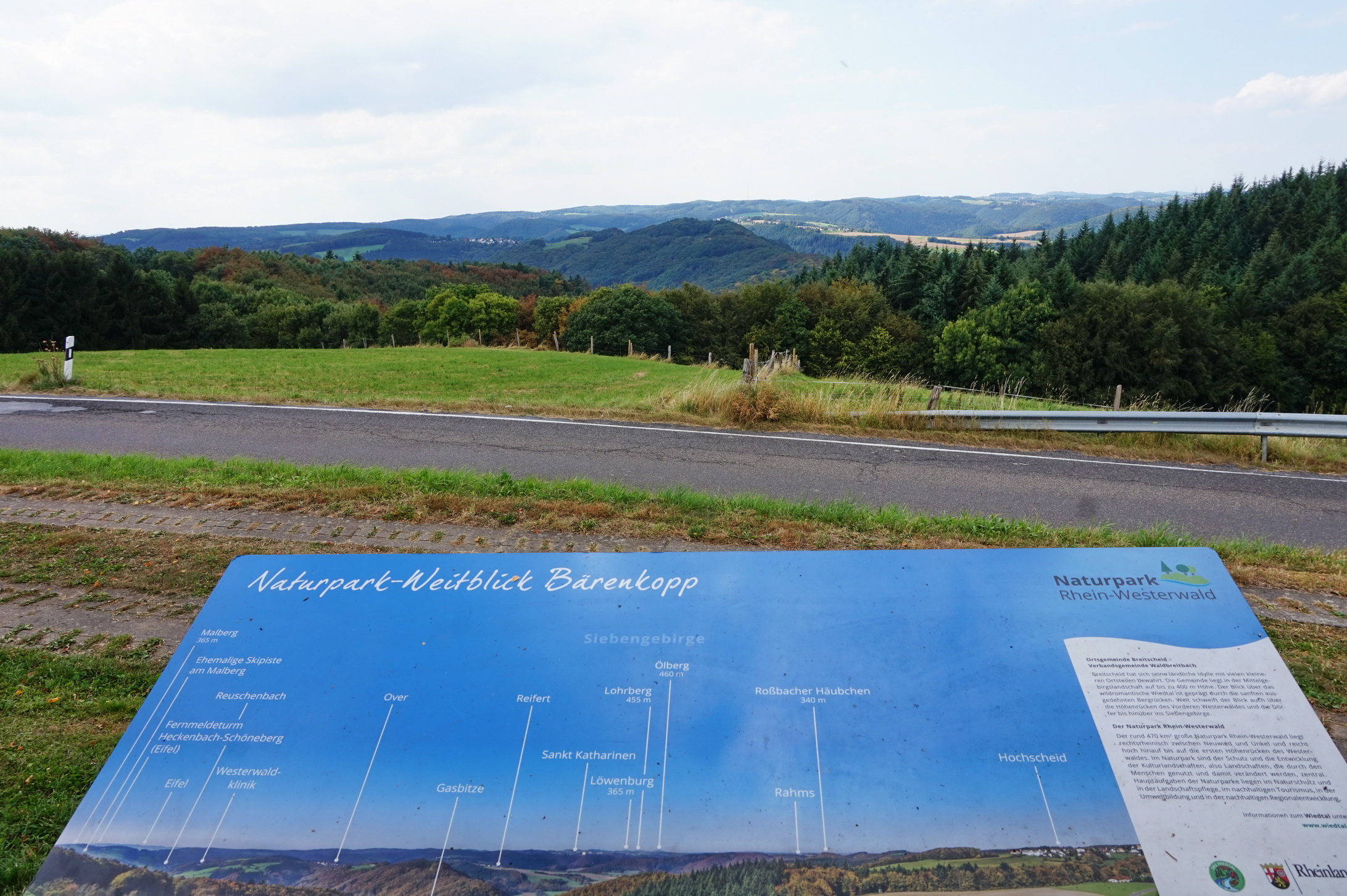 Wir müssen das, was wir hinauf gelaufen sind, natürlich auch wieder runter. Ab Verscheid geht es also bergab. Erst eine ganze Weile an der Landstraße entlang, wo es verschiedentlich Rastplätze mit Informationstafeln gibt.