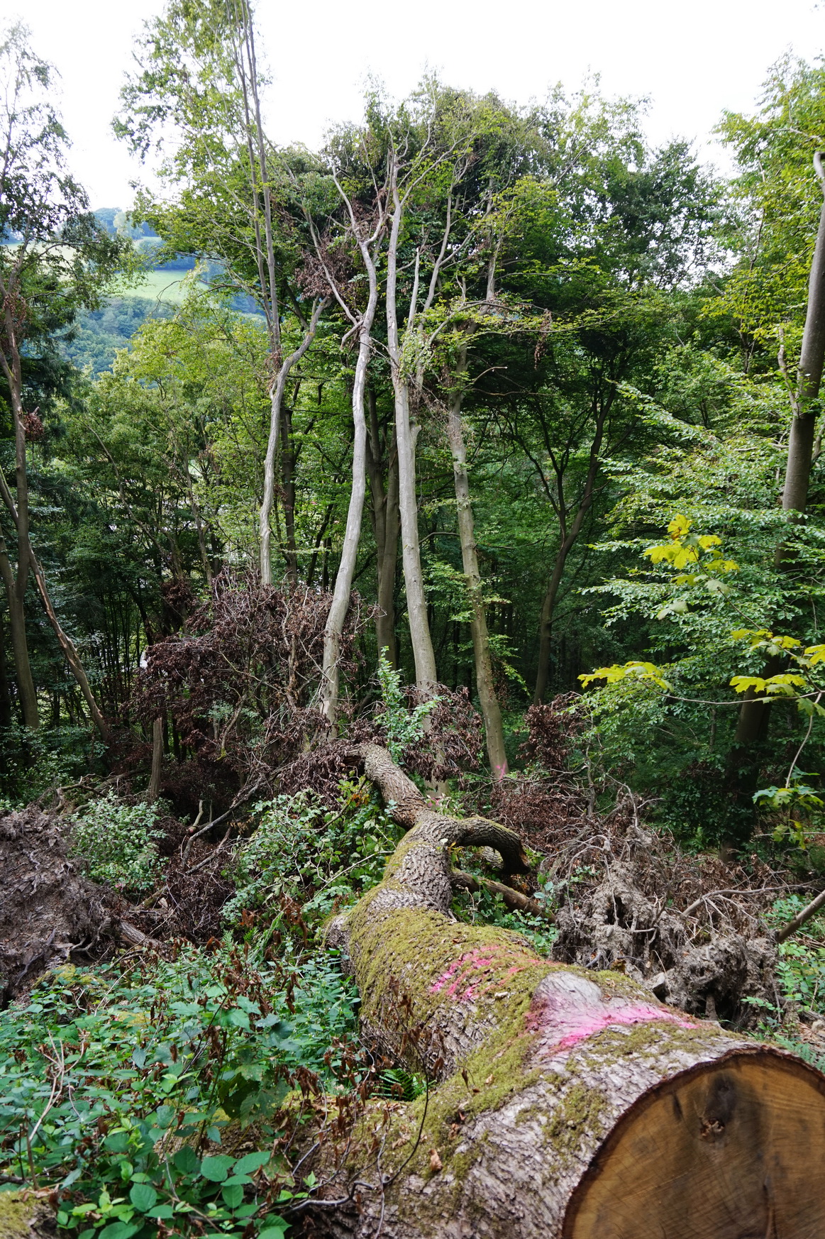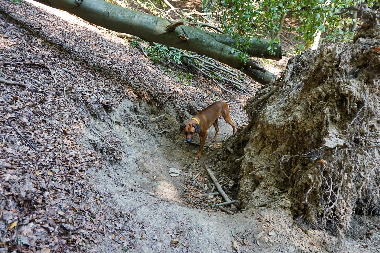 Da an diesem Hindernis eine Wandermarkierung angebracht ist, wird der umgestürzte Baum also nicht bei nächster Gelegenheit weg geräumt.