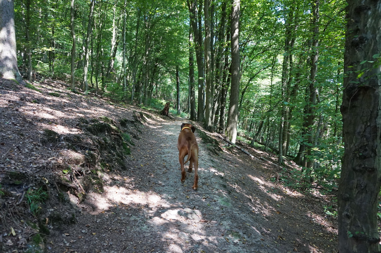 Wie so oft ist mein reizender Gemahl geradezu in Lichtgeschwindigkeit unterwegs. Dayo kann sich nicht so richtig entscheiden, an wessen Seite er laufen soll … Papa rennt, Mama schleicht … also läuft er immer hin und her …