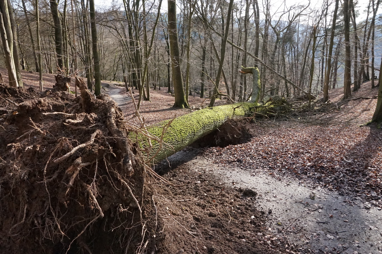 Aber weiteres freilaufendes Wild begegnet uns erst einmal nicht mehr. Und auch Herr Jobst, der Platzhirsch, ist nirgends zu sehen. Allerdings deuten die Spuren rechts und links des Weges darauf hin, dass hier die Waldbewohner des Öfteren vorbei spazieren.